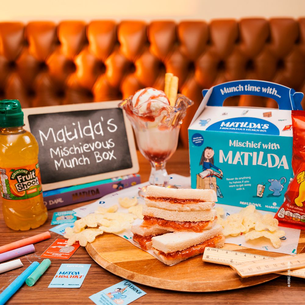 Inspired by Matilda’s love of stories, brilliant bravery and mischief – this menu is made for children with curious minds. From Matilda’s Mischievous Munch Box, packed with familiar favourites and a playful twist, to comforting classics and sweet treats – there’s something for everyone! All thoughtfully put together, with a playful twist that makes mealtimes that extra bit special.